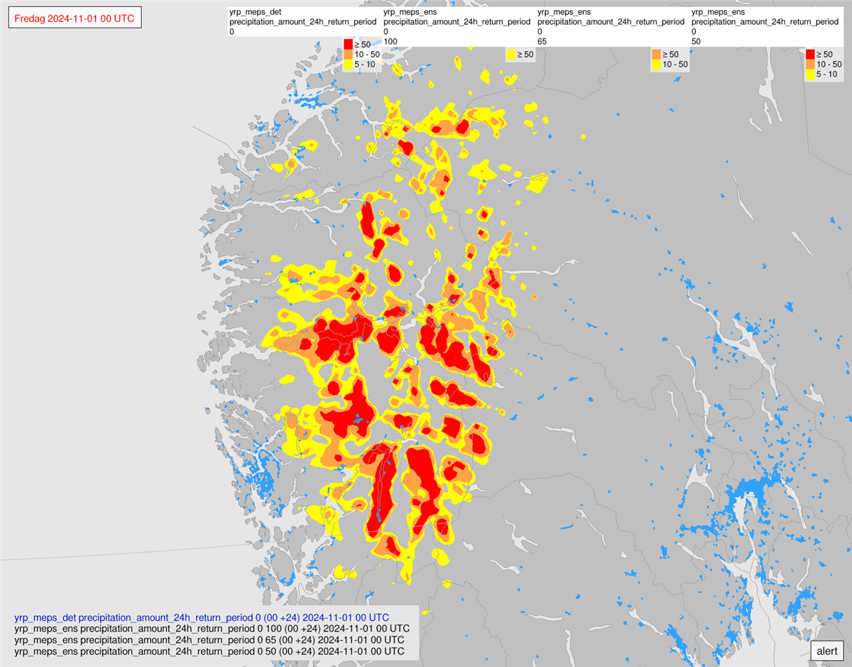 Det er sendt ut farevarsel frå Meteorogisk institutt (MET) og NVE om ekstremt mykje nedbør i ein 24 timars periode. Varselet gjeld frå midnatt Torsdag 31.11 til midnatt Fredag 1. nov. Ekstremværet har fått namnet Jakob.