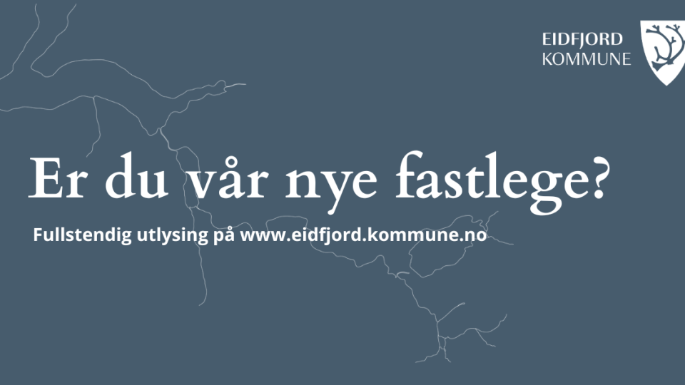 100% stilling som fastlege 100% fast stilling som fastlege i Eidfjord kommuneSøknadsfrist: 31.01.2026